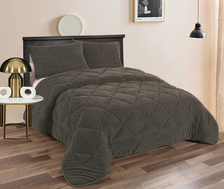 3pc Sherpa Fleece Comforter Set | Reversible 2 Side Warm Comforter