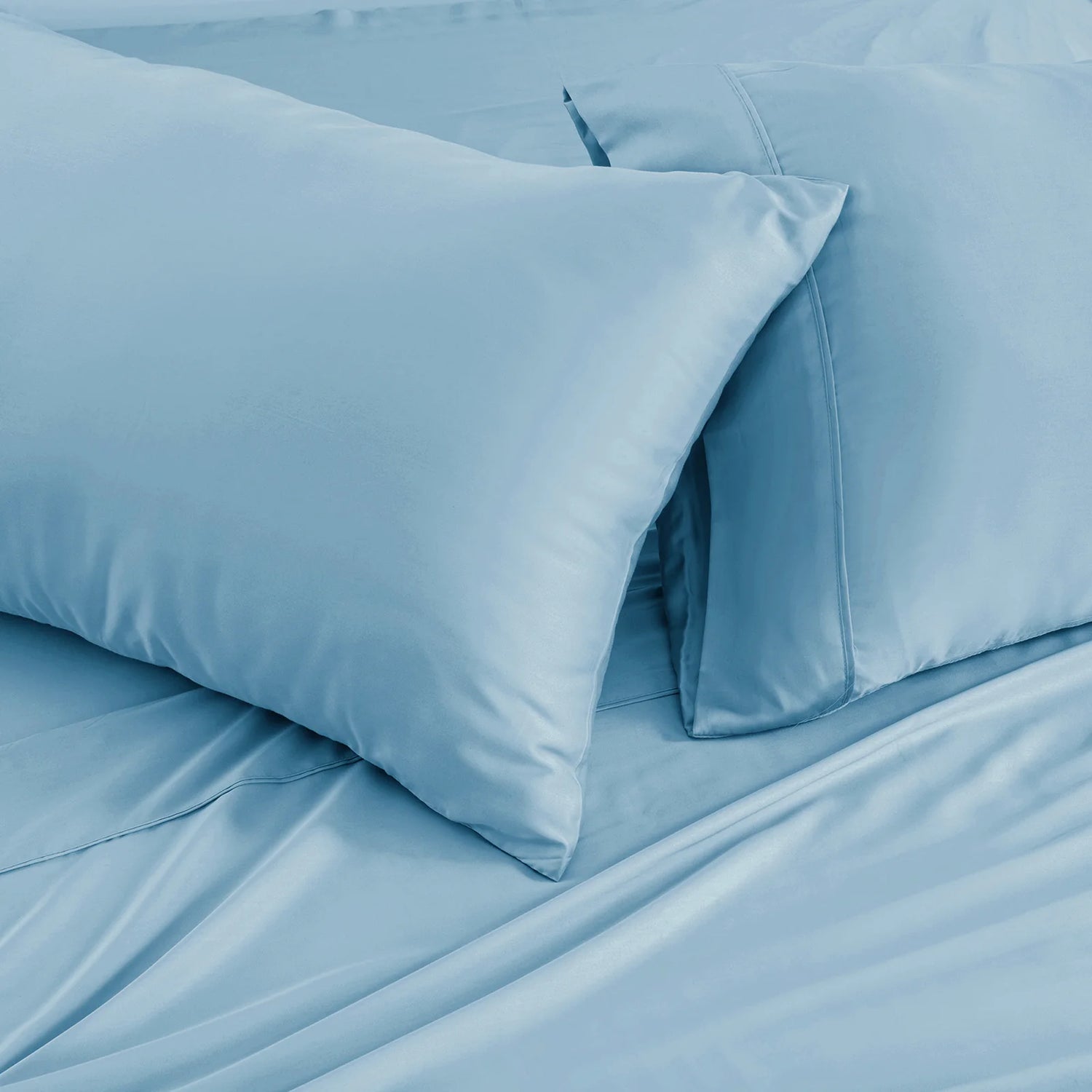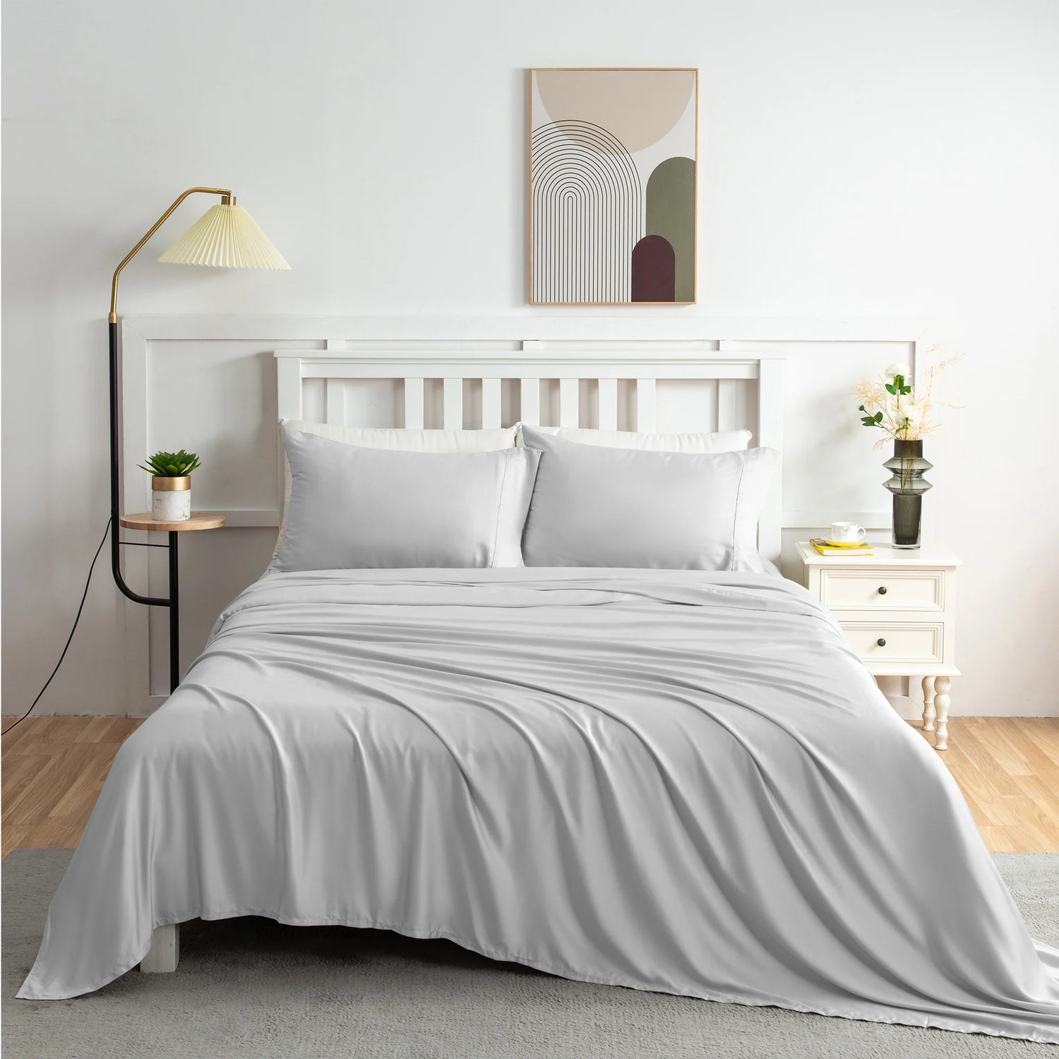 Experience the luxury of silk with our bamboo sheet set, crafted from ultra-fine bamboo fibers that create a smooth, lustrous fabric. These sheets offer exceptional breathability and moisture-wicking properties, keeping you cool and fresh throughout the year. Their natural ability to regulate temperature ensures comfort in both summer and winter. Ideal for sensitive skin, bamboo fibers possess antibacterial and bactericidal qualities, reducing bacteria by over 75% within 24 hours, promoting a healthier sleep environment. Enjoy wrinkle-free, odor-resistant bedding designed for lasting comfort and hygiene.