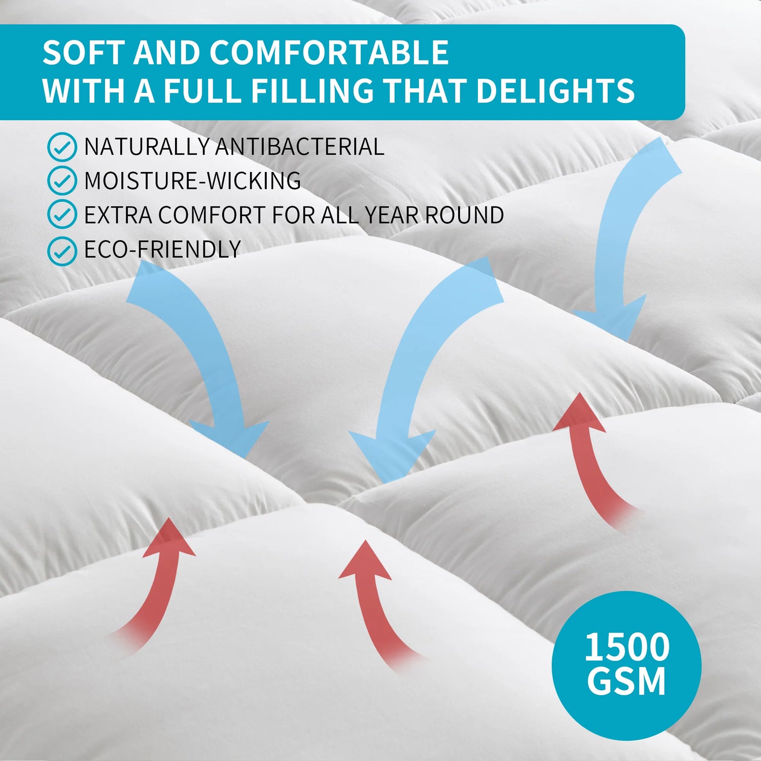 Luxiore Airmax 1500GSM Bamboo Mattress Topper | Cooling Soft 10cm Luxury Plush Topper