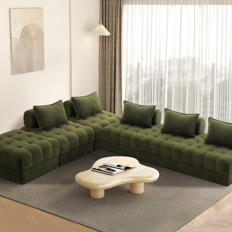 Valore Verde Modular Sofa Lounge Set | Adjustable Armless Boucle Green Fabric Sofa Modular Lounge