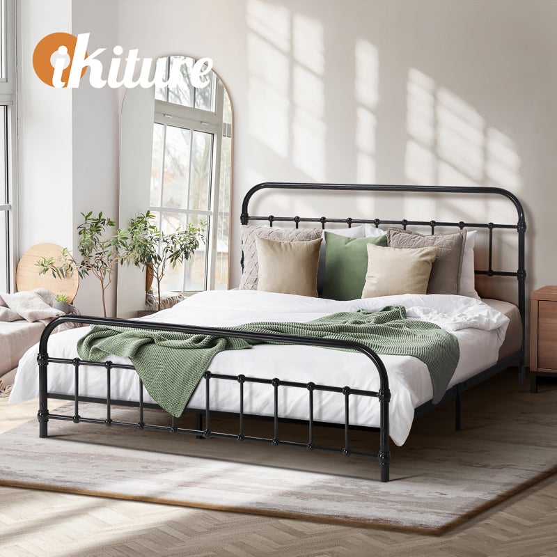 Our Oikiture vintage-style metal bed frame brings timeless elegance to any bedroom. Crafted with intricate scrollwork and decorative accents, it boasts a finish that adds authentic vintage flair. Its sturdy construction provides stability and reliable support for a restful sleep, while its metal slatted design ensures good mattress support. Durable and reliable, this metal bed frame offers lasting beauty and functionality - a timeless investment to pass down for generations. Embrace the romance and nostalgia of the past with our vintage-style bed frame: experience the charm of yesterday today!
