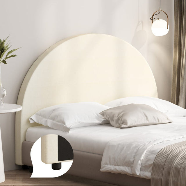 Teddy Luxore Linen Fabric Round Headboard | Cushioned Beige Upholstered Linen Bed Head
