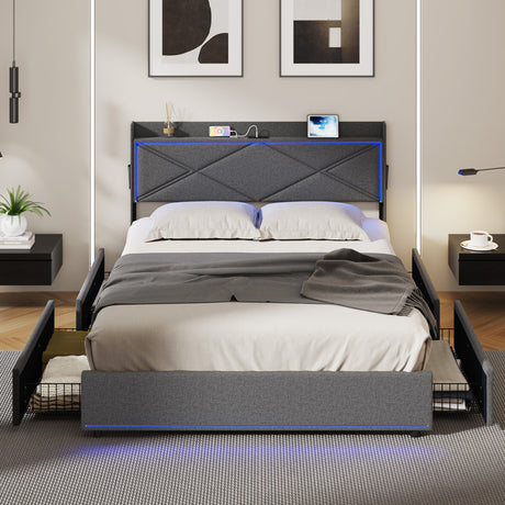 $89900Unit price /Unavailable Sierra LED Storage Bed with USB Charging | Grey Fabric Storage LED Lights Bed 4 Draws