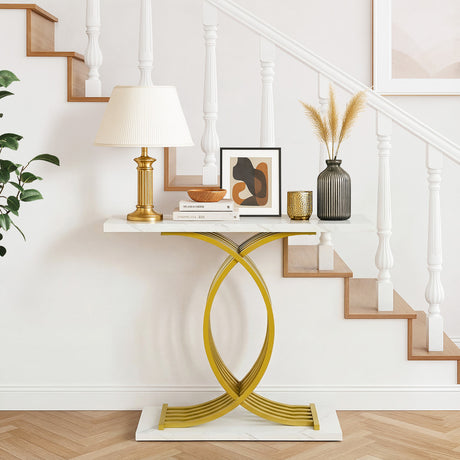 $39900$69900Unit price /UnavailableUrbino Marble Effect Top Console Table | 80cm High White and Gold Hallway Entry Table