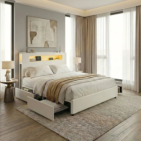 From $36005$89900Unit price /UnavailableMarlisse 4 Draw Plush Velvet Beige Storage Bed | Adjustable Bedhead LED Lighting Padded Bed Frame