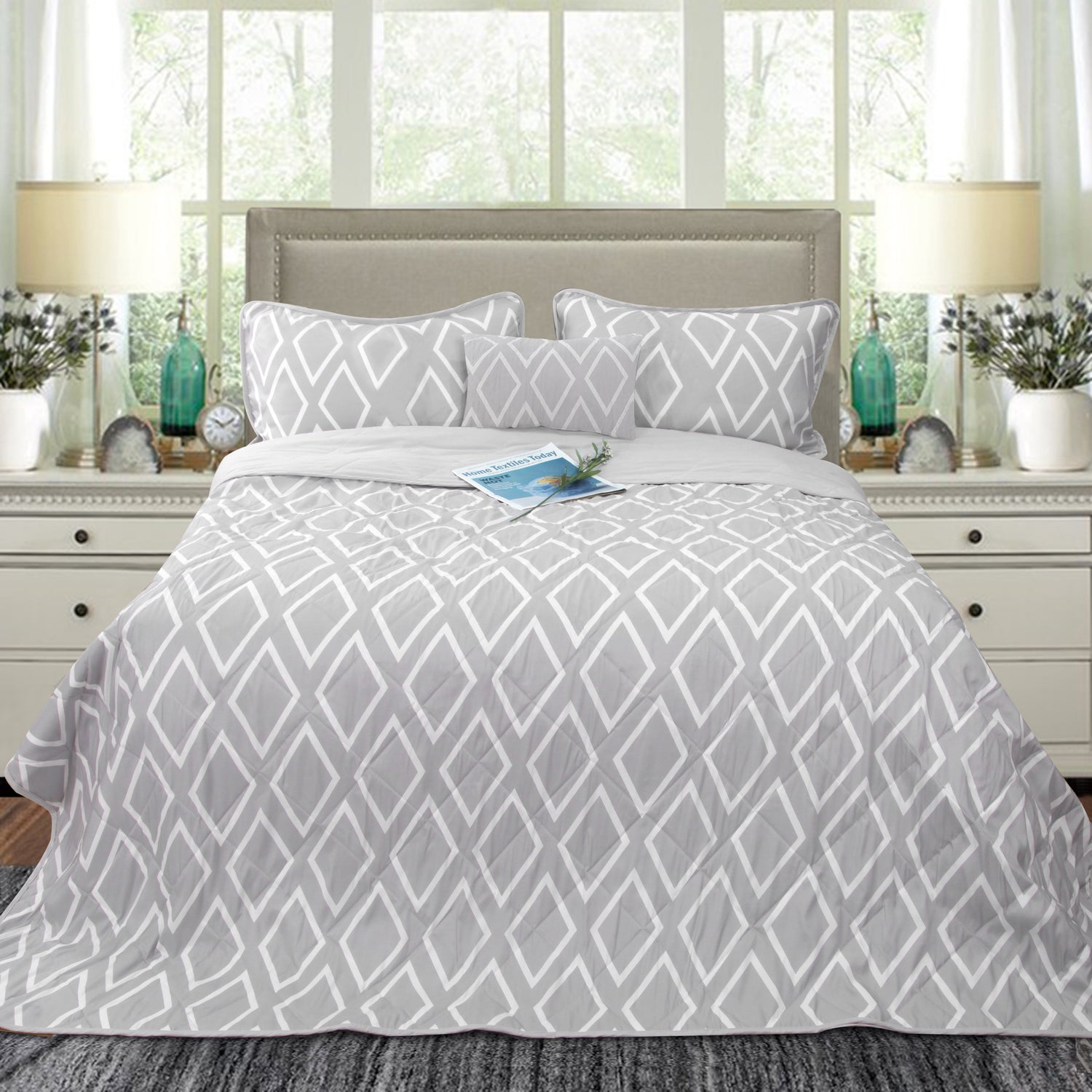 Ramesses Alena 4pc Reversible Ultrasonic Embossed Micro Flannel Comforter Set | Modern Winter Bedding Set