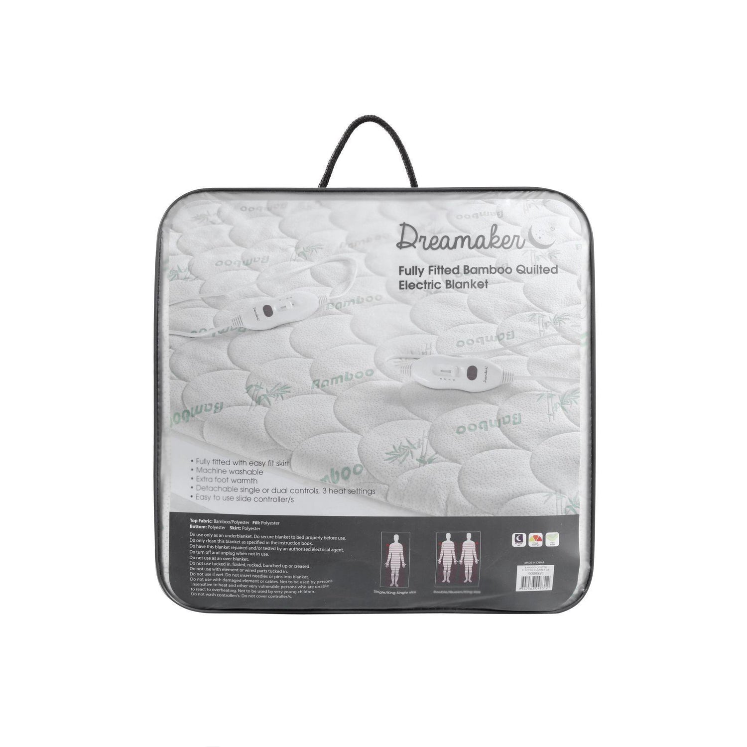 Keep warm this winter with our Bamboo Quilted Electric Blanket. Eco-friendly, biodegradable and sustainably sourced, Bamboo bedding is naturally hypoallergenic and antibacterial, helping to reduce allergies and moisture build-up. Designed to suit Australian standards, the electric blanket comes with 2 controllers - perfect for couples who want to set their own temperatures. Complete with 3 heat settings and a handy indicator light, this is a combination of luxury, comfort and practicality. With an SAA certified plug, overheating protection element & overcurrent defence, the blanket is fully fitted and easy to slip over most mattresses. Finished off with detachable cords that make the unit completely machine washable, this one is a must-have!