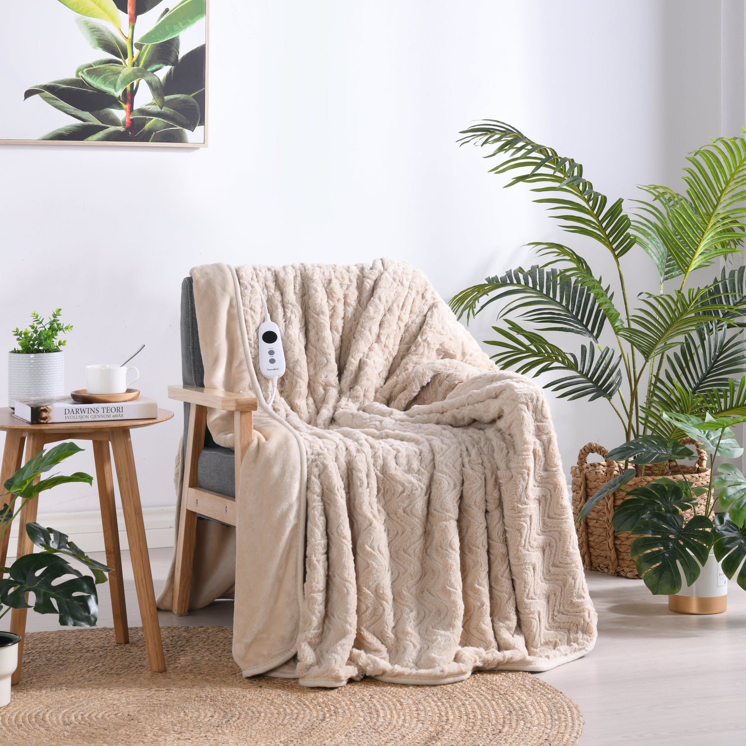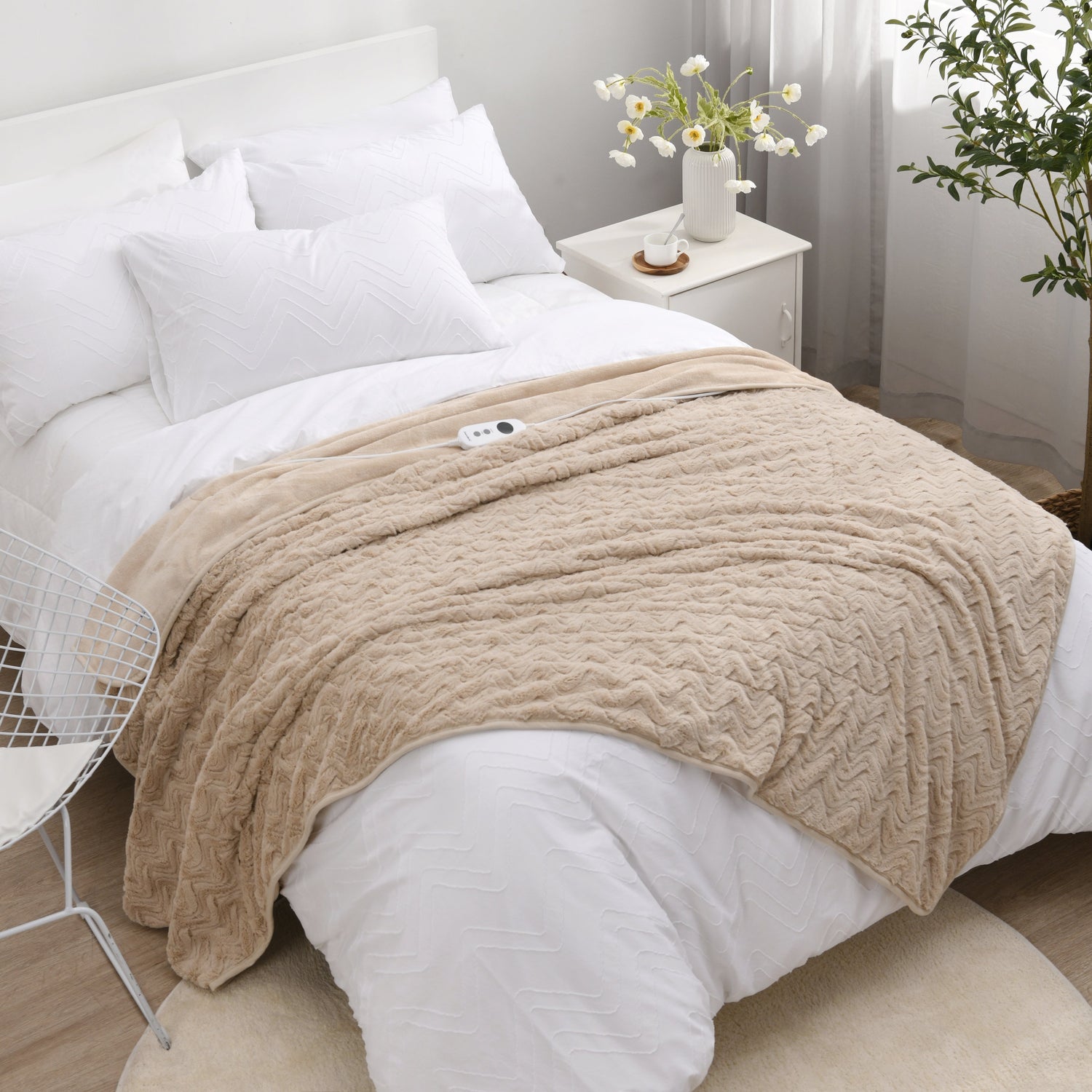 Luxore Super Soft Faux Fur Heated Throw | Plush Electrical Heated Blanket