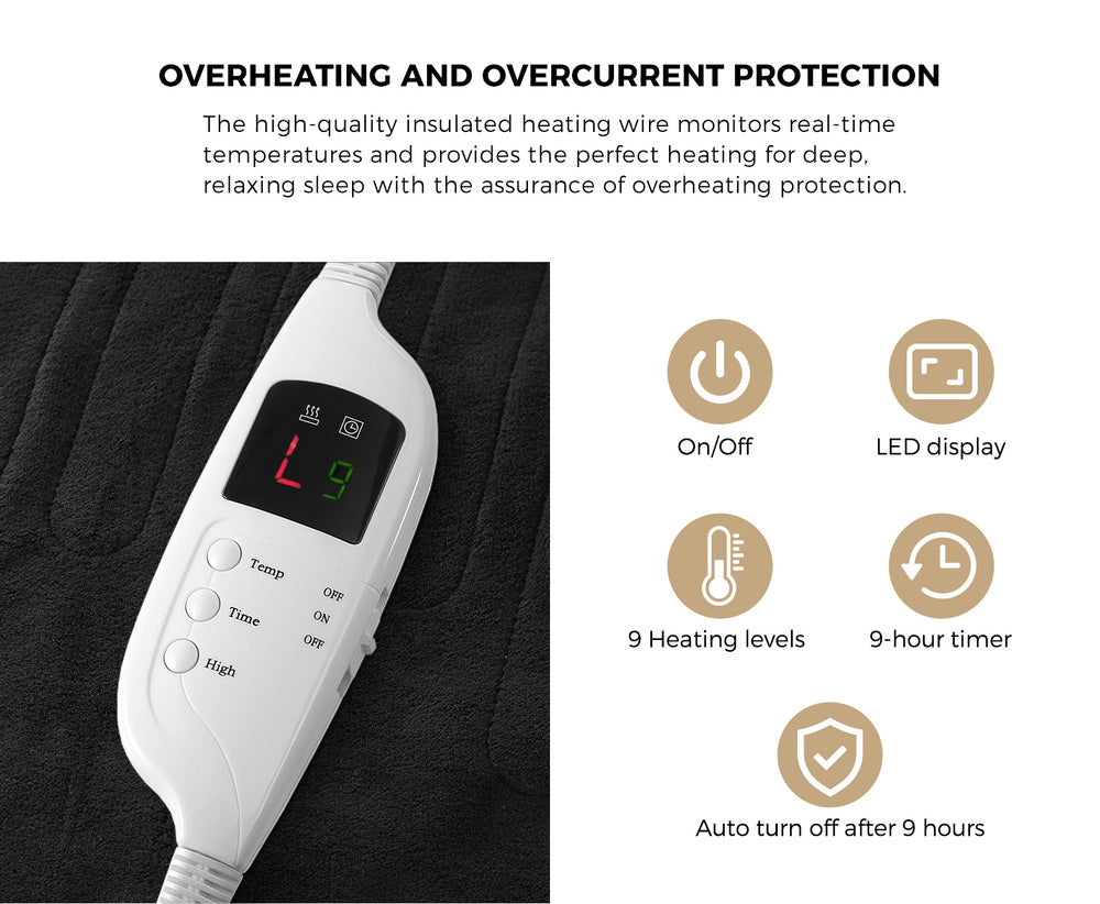 Nuvola Super Warm Electric Heated Blanket with Auto Off | 9 Heat Setting Fleece Electric Blanket - Black is backordered and will ship as soon as it is back in stock.