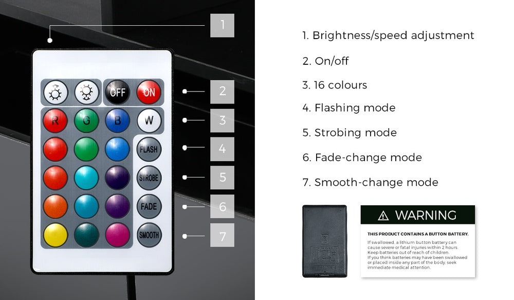 Please point the remote control towards the receiver to activate and customise the LED lights.