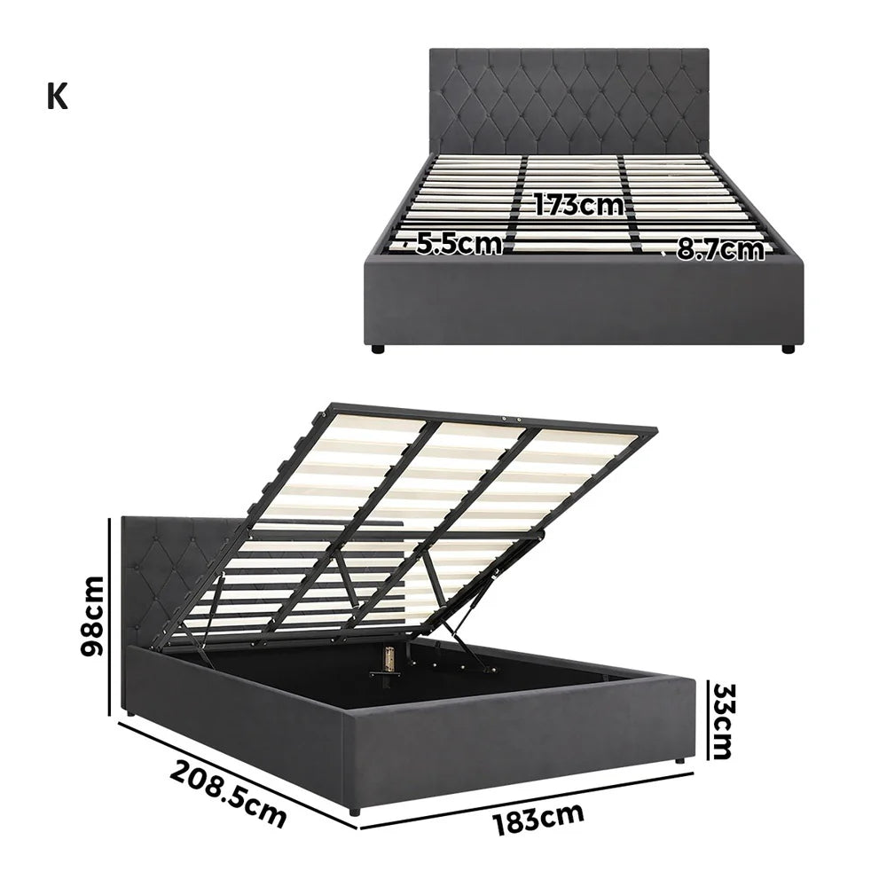 Premium Milano Grey Soft Velvet Fabric Gas Lift Storage Bed | Two In One Bed and Storage Combo Bed Frame