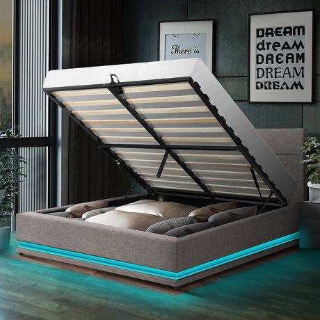 $54800Unit price /Unavailable Aria Supreme Luxe Grey Fabric LED Bed Frame | Modern Soft Touch Fabric Gas Lift Storage Bed