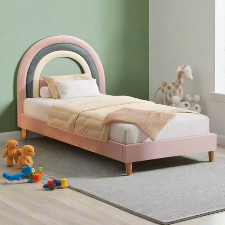 From $17955$29900Unit price /UnavailableRainbow Unicorn Style Velvet Bed Frame | Single Size Kids Pink Soft Velvet Fabric Bed