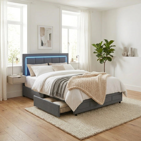From $17900$32900Unit price /UnavailableMarlisse 4 Draw Plush Velvet Grey Storage Bed | Adjustable Bedhead LED Lighting Padded Bed Frame