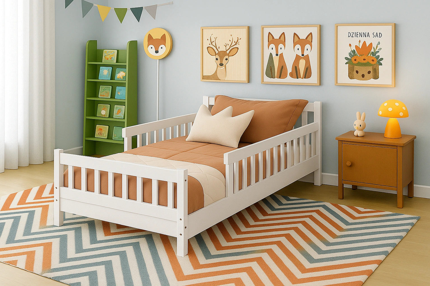 Reggio Luxe Premium Kids Timber Guard Bed | Single Size Childrens Wooden Gate Guard Bed - White is backordered and will ship as soon as it is back in stock.