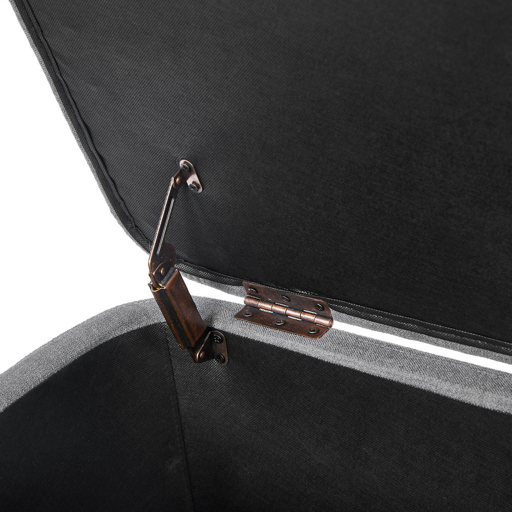 Taledo Two in One Ottoman Storage Box and Seating Bench | Cushioned Soft Boucle or Fabric Blanket Box - Grey Fabric is backordered and will ship as soon as it is back in stock.