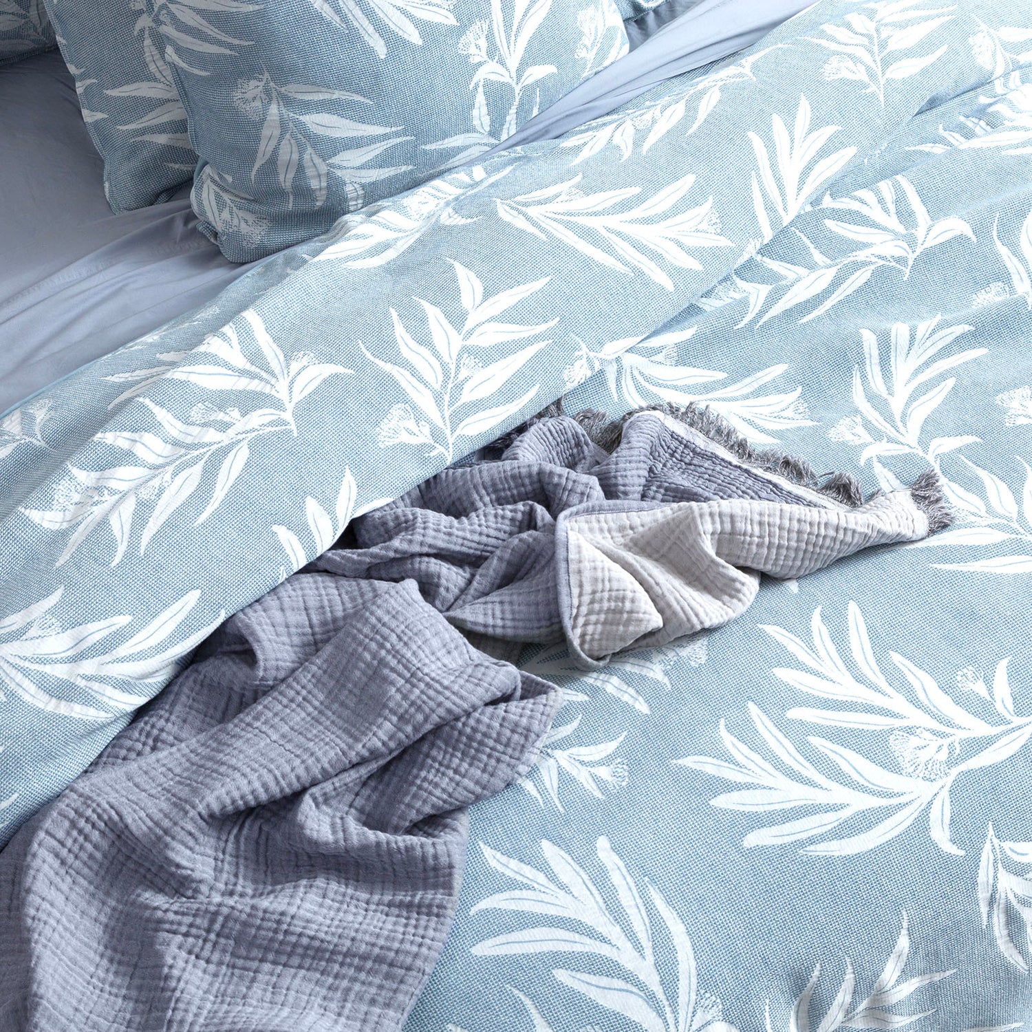 The defining characteristic is its eye-catching large floral motifs. These intricate floral designs are expertly woven and yarn-dyed into the fabric, ensuring vibrant and enduring color. The sizable leaves in the pattern feature a distinctive waffle weave, adding an additional layer of texture and visual interest. The set includes a Quilt cover and Pillowcase, and is complemented by the addition of a European Pillowcase. Experience the beauty and durability of Bahama Flora 100% Cotton Jacquard Quilt Cover Set by Renee Taylor. With its intricate, expertly woven floral designs and vibrant, long-lasting colors, this set is sure to add a touch of elegance to your bedroom. The unique waffle weave pattern on the sizable leaves adds a visually appealing layer of texture to the fabric. The set includes a Quilt cover and Pillowcase, as well as a European Pillowcase to complete the look. Elevate your bedroom decor with this high-quality, stylish bedding set.