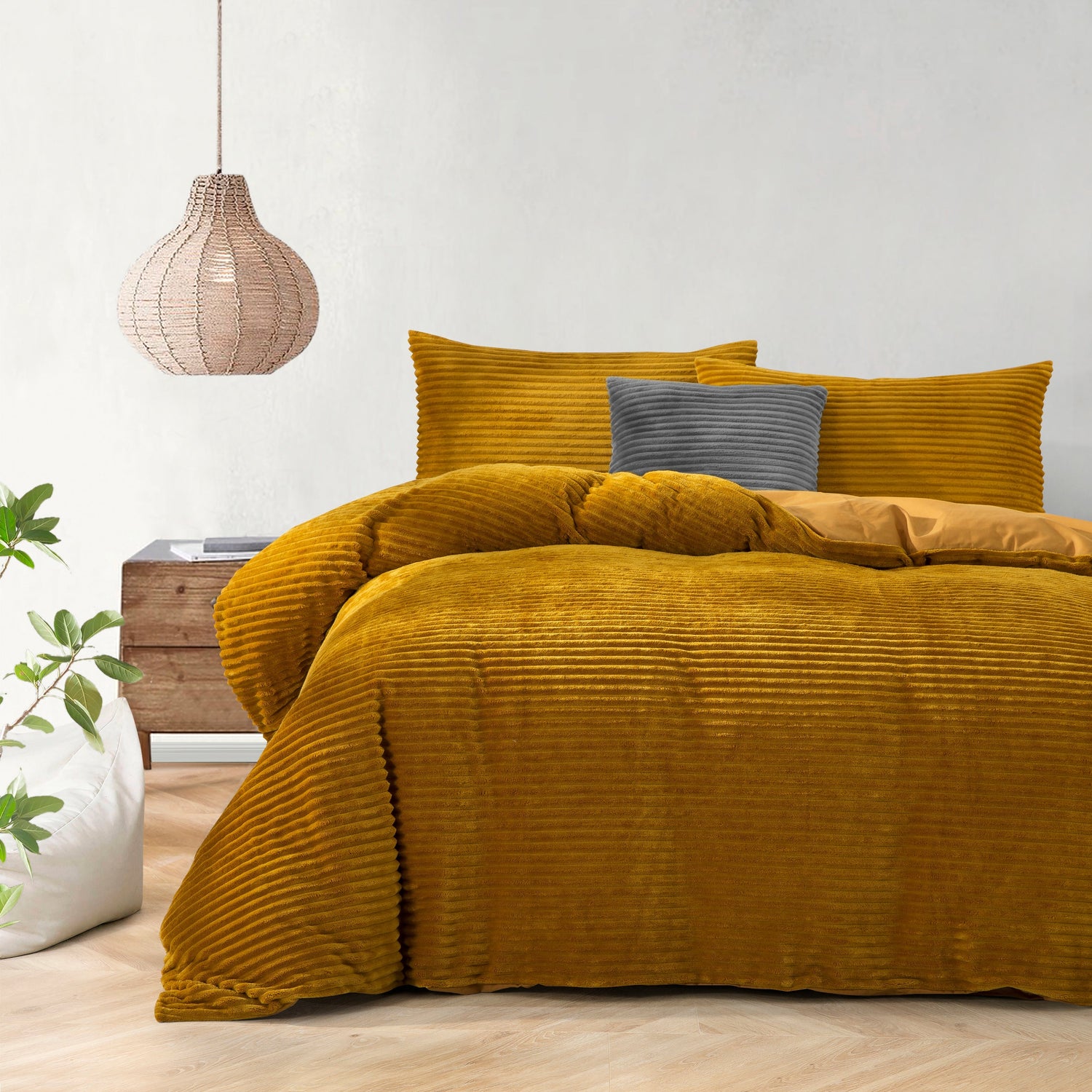 With a silky-soft velveteen fabric on one side and a plain fabric backing, if you’re after a warm quilt cover for winter, this set offers a rich and sumptuous feel with the benefit of added warmth. Available in Teal, Mustard, Blush and Emerald, the beautiful jewel tones bring a dramatic ambience to your space.