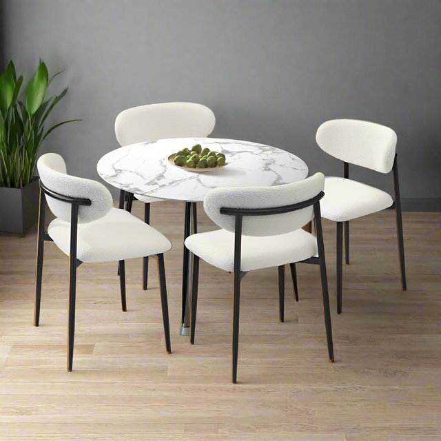 5pc Palermo Boucle Round Dining Table Set | 5 Seater 110cm Marble Style Dining Table Set