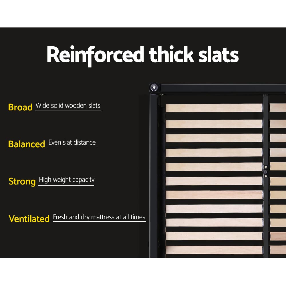 The Capri Bed Frame has a versatile neutral tone that complements various decorating styles. Enhance your bedroom with this elegant and sophisticated bed frame and take advantage of its generous storage options. Constructed with a solid steel frame, reinforced with metal bars and heavy-duty connectors, the Mila Bed Frame is also cushioned with dense foam and wrapped in premium faux linen fabric for a comfortable touch. The frame boasts a curved wooden slat base for even weight distribution and a center support strut for additional stability. The tufted headboard adds a touch of designer class to the overall structure. Beneath the frame, four spacious drawers provide ample storage for seasonal bedding, linens, and personal items. The drawers are conveniently mounted on wheels for easy access.Â