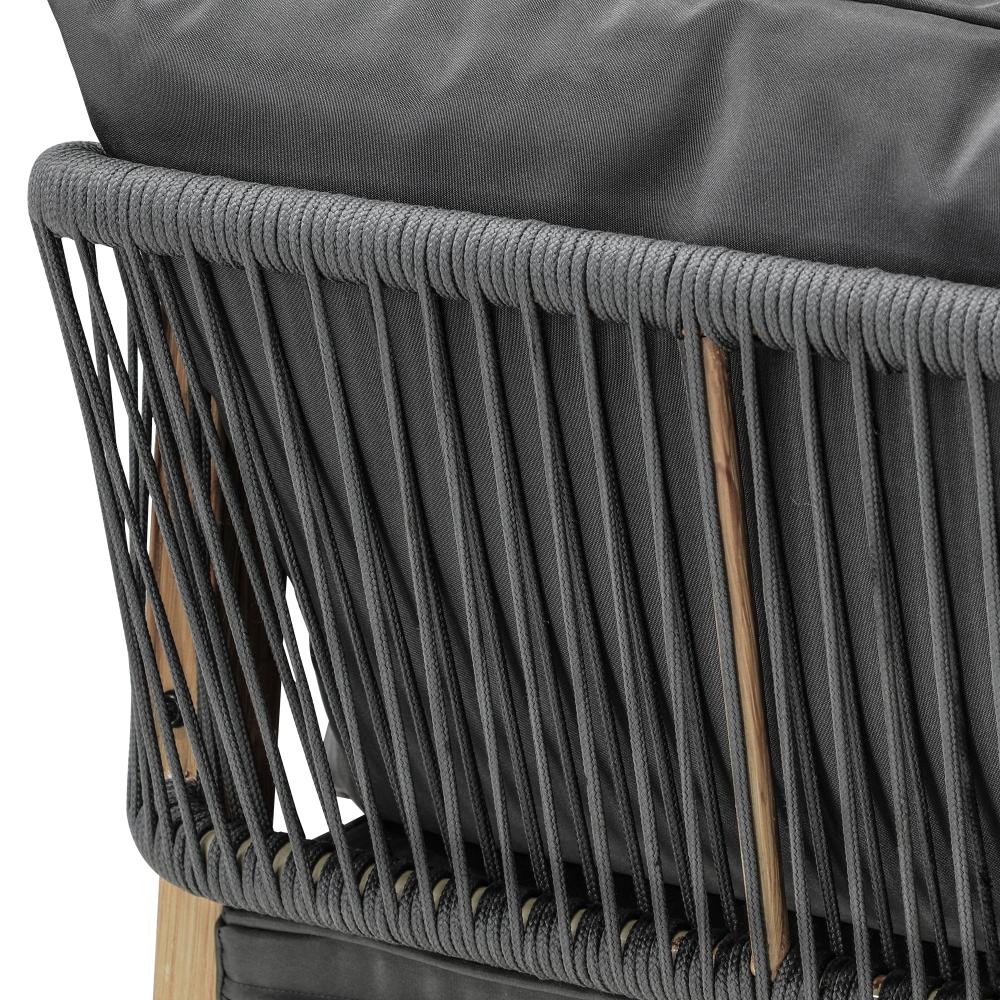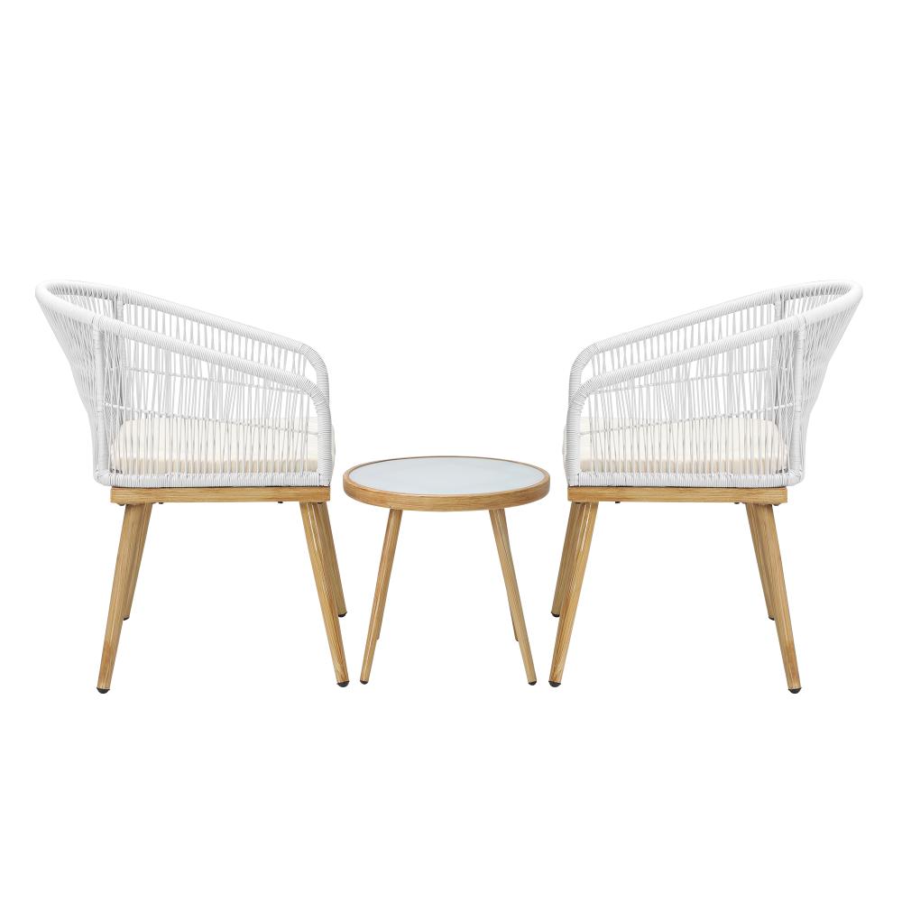 Introducing the Livsip 3-piece outdoor armchair and side table set, the ideal solution for a comfortable and stylish patio seating area. Crafted with sturdy, weather-resistant materials and boasting a lasting design, this set is built to last. The armchair offers generous space and a padded seat cushion for extra comfort, paired with rope detailing for a stylish finish. The accompanying side table provides a practical and attractive additional surface area to keep items within arm's reach. Cleaning and maintenance are easy thanks to the stain-, mold-, and mildew-resistant materials used. Relax in style with this outdoor set and create a welcoming oasis that enhances your outdoor living.