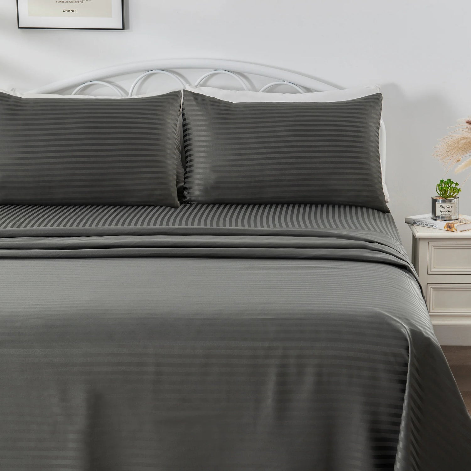 Luxiore 1800TC Super Soft Silky Microfibre Sheet Set | Luxury Pin Stripe Microfibre Sheets