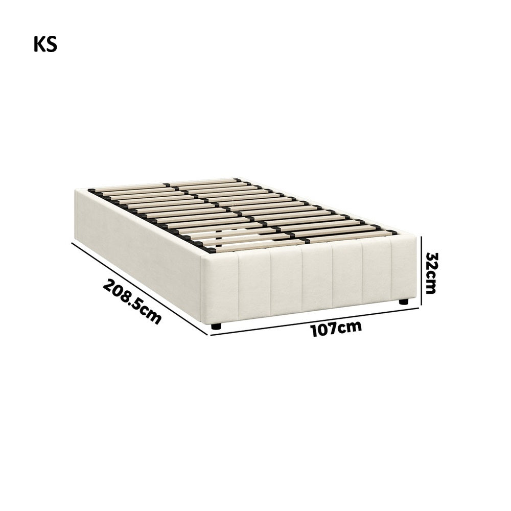 Milo Luxe Velvet Fabric Platform Bed Base with Gas Lift Storage | Soft Touch Cream Fabric Gas Lift Space Saving Bed - King Single is backordered and will ship as soon as it is back in stock.