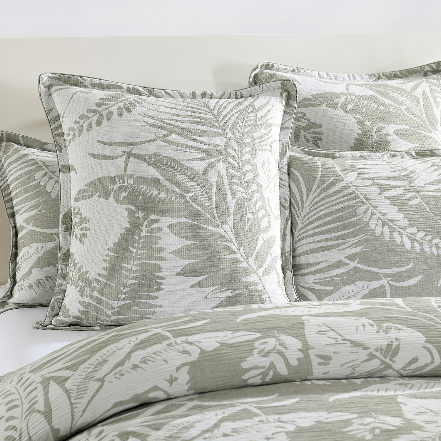 250TC Textured Jacquard Palm Breeze Quilt Cover Set in Sage Green by Renee Taylor
