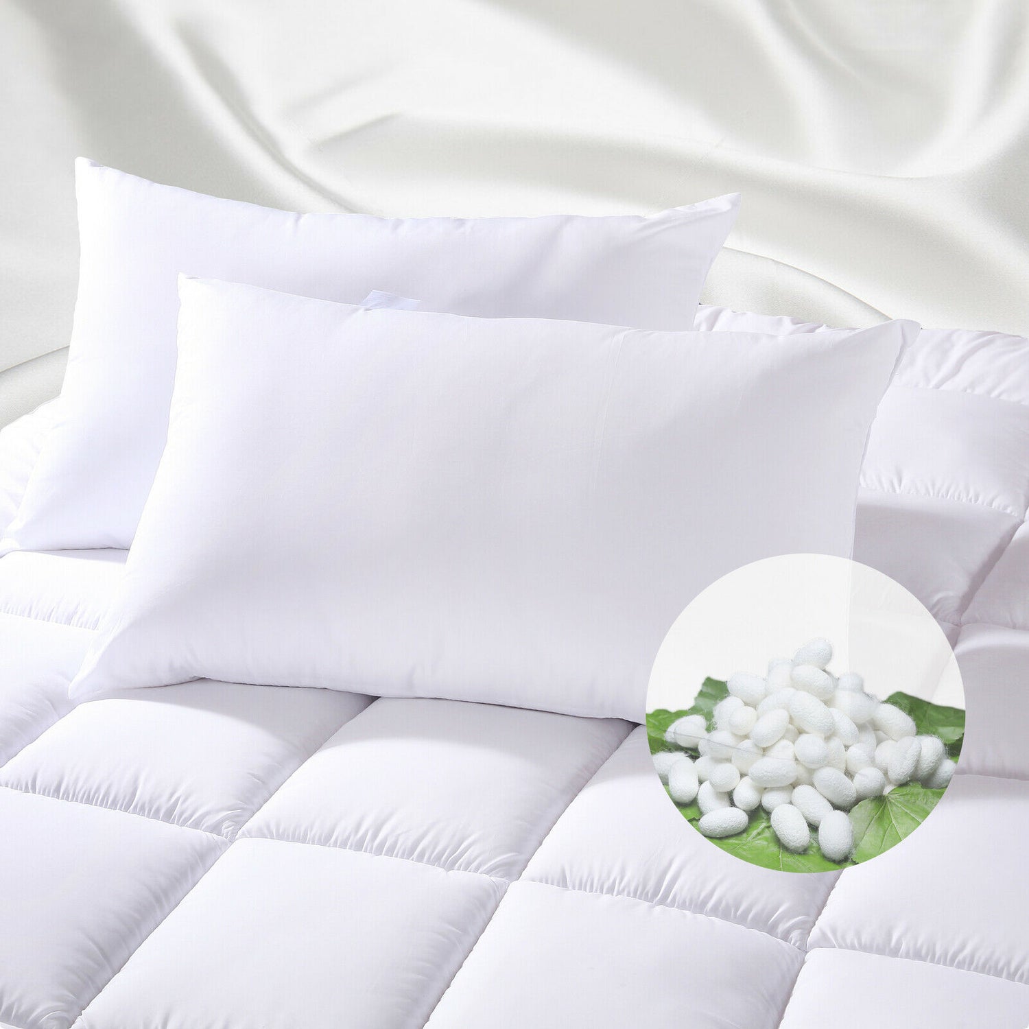 Premium 700GSM Cooling Mulberry Silk Filled Twin Pack Pillows Breathable Eco Friendly Pillows