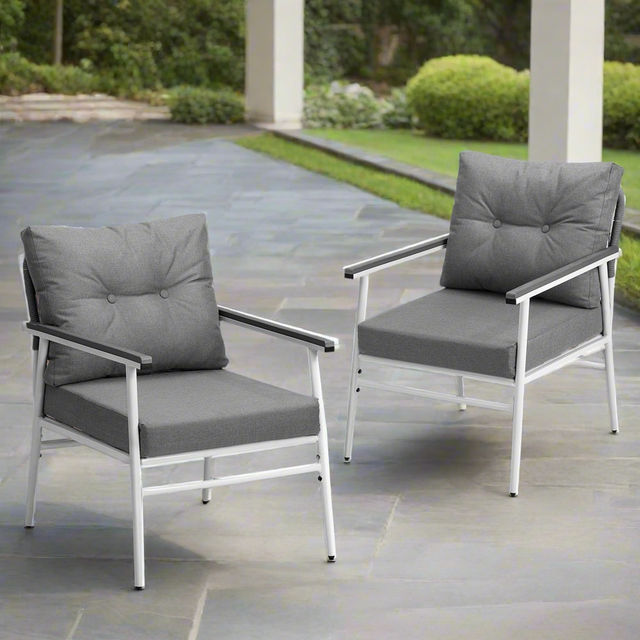Enjoy all that life has to offer, whether it's relaxing in the sun or having meaningful conversations with loved ones. The Livsip Outdoor 2-pc Armchair Set adds style, modernity, and beauty to your outdoor space, aligning with your sophisticated lifestyle. With well-padded cushions, supportive armrests, and sturdy weather-resistant construction, this set is perfect for all occasions. Plus, it seamlessly blends with any indoor decor ideas. Ready to elevate your outdoor experience with the Livsip Outdoor 2-pc Armchair Set? Click "Buy" now and let good times begin.