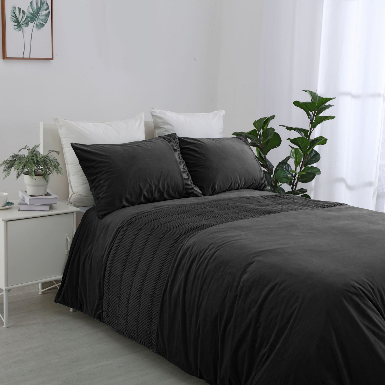 Luxore Ripple Smooth Velvet Quilt Cover Set | Premium Velvet Duvet Covers - Queen / Charcoal is backordered and will ship as soon as it is back in stock.