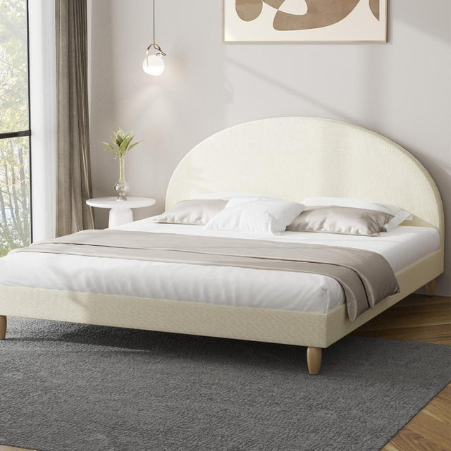 Teddy Millie Beige Fabric Round Bed | Arched Cushioned Touch Beige Upholstered Premium Fabric Bed Frame