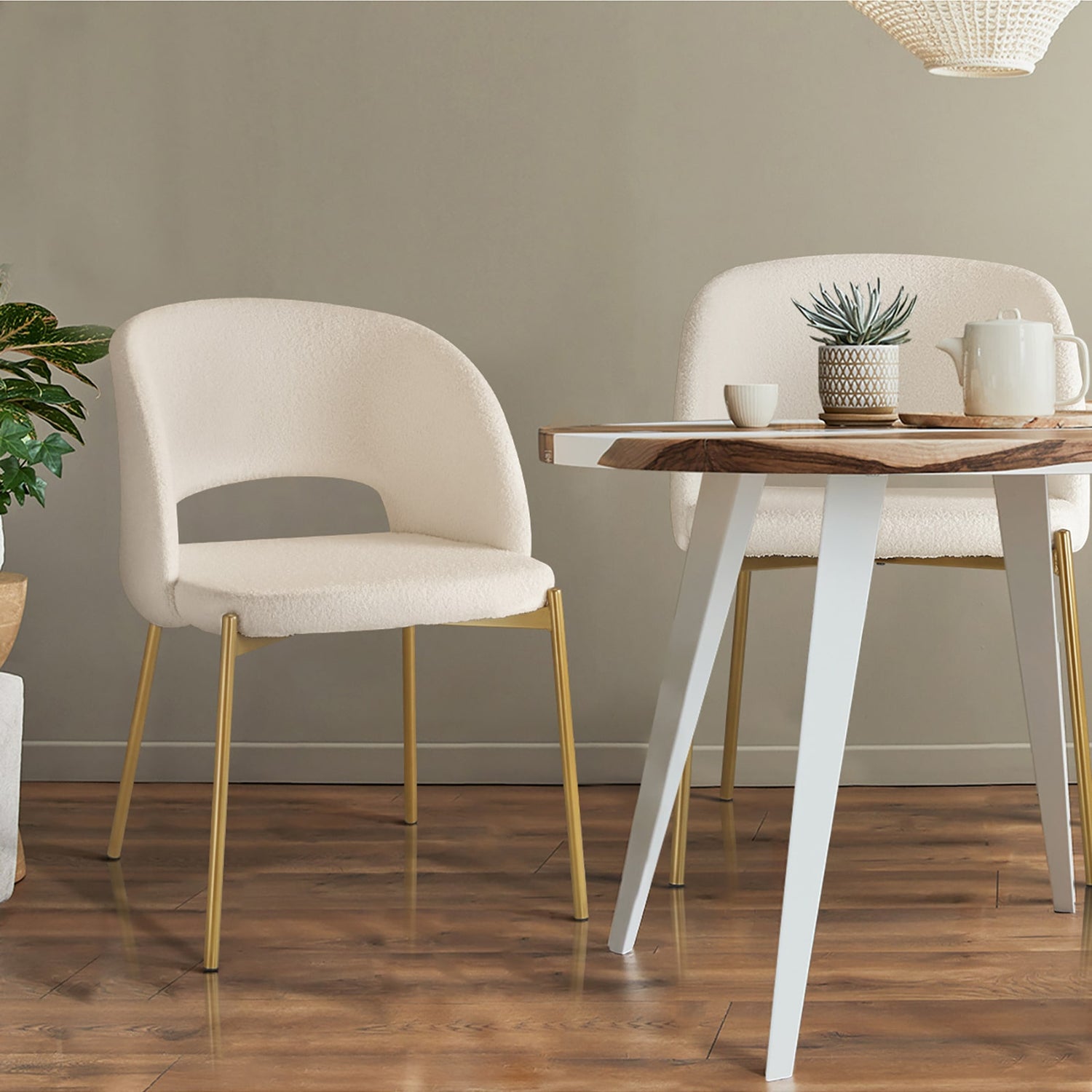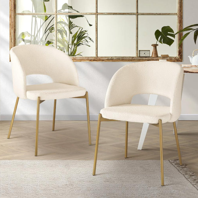 Set of Two Teddy Millie Boucle Fabric Dining Chairs | Premium Boucle or Fabric Dining Chair Set - White Boucle with Gold Legs is backordered and will ship as soon as it is back in stock.