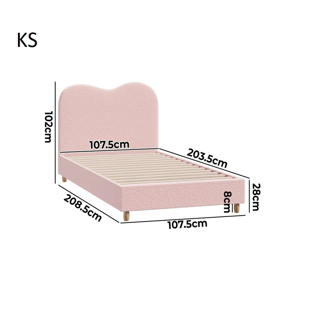 Teddy Plush Heart Pink Boucle Fabric Bed | Cloud Shape Cushioned Touch Upholstered Boucle Bed Frame - King Single is backordered and will ship as soon as it is back in stock.